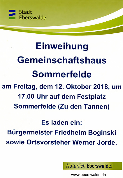 | Einladung zur Einweihungsfeier des Gemeindehauses Sommerfelde Termin: Fr. 12. Oktober 2018 Beginn: ab 17:00 Uhr ![]() |