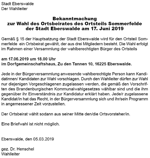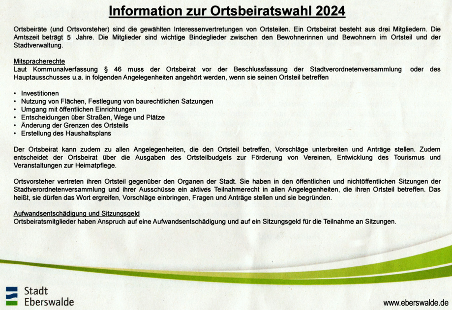| Bürgerversammlung zur Wahl des Ortsbeirates Termin: Mo. 17. Juni 2019 Beginn: ab 18:00 Uhr ![]() |
