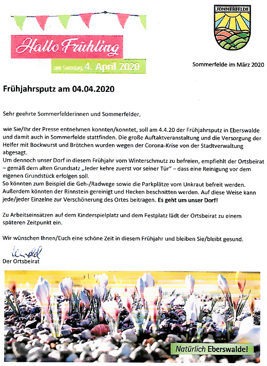 | Aufruf zum Frühjahrsputz Termin: Sa. 04. April 2020 ![]() |