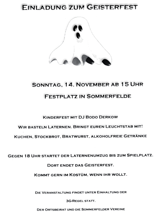| Einladung zum Geisterfest Termin: So. 14. November 2021 ab 15:00 Uhr ![]() |