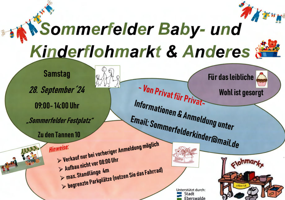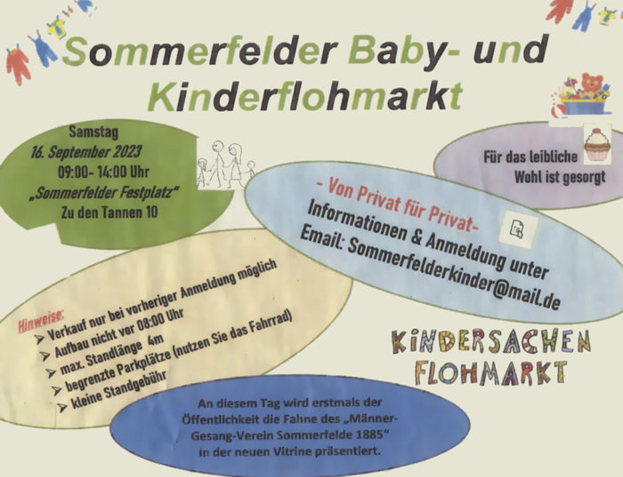 | Sommerfelder Baby- und Kinderflohmarkt Termin: Sa. 16. September 2023 ab 9:00 Uhr ![]() |