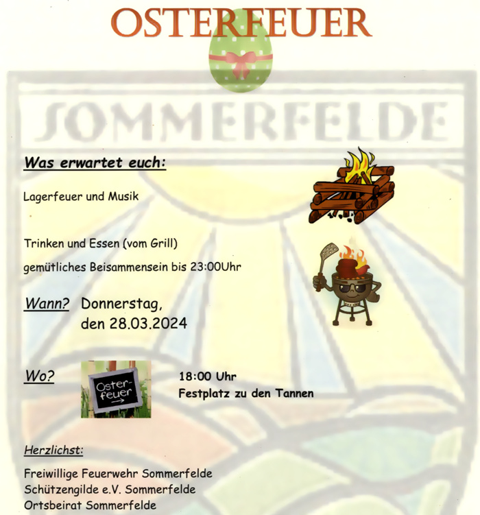 | Einladung zum Osterfeuer Termin: Do. 06. April 2023 ab 18:00 Uhr ![]() |